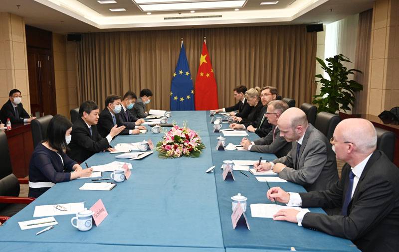 欧盟现任轮值主席国克罗地亚驻华大使米海林、候任轮值主席国德国驻华大使葛策共同参加会见。
