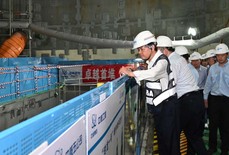22日下午,黄润秋一行前往昌江核电厂,调研核与辐射安全监管工作。黄润秋在1号机组主控室听取机组运行情况汇报,深入工地现场察看“玲龙1号”“华龙1号”机组建设进展及质量安全保障情况。黄润秋强调,要深入贯彻总体国家安全观和核安全观,统筹发展和安全,依法实施核与辐射安全监督,压实运营单位主体责任,加强在建机组施工质量管控,强化已建机组安全稳定运行,确保核安全万无一失。黄润秋还慰问了生态环境部华南核与辐射安全监督站驻场监督员,叮嘱大家要以“时时放心不下”的责任感,认真履行好核安全监管职责,守牢核与辐射安全底线。